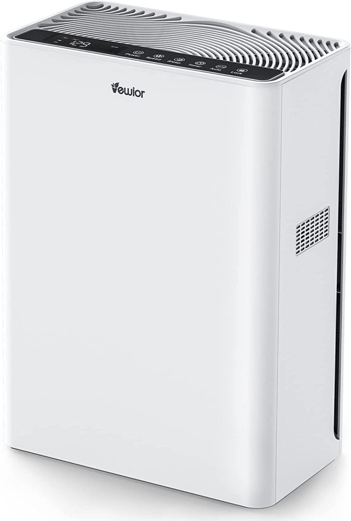 - ★【H13 True HEPA Filter】VEWIOR air purifier with the 3-stage filtration comprising a pre-filter, HEPA filter, and an activated carbon filter. Efficiently purify PM 2.5, VOCs, pollen, smoke, pet dander, and dust. It detects air quality and displays PM2.5 (Reference value)on the panel to ensure comfortable fresh air. We recommend replacing the filter every 3-6 months to ensure the optimum performance of the air purifier.